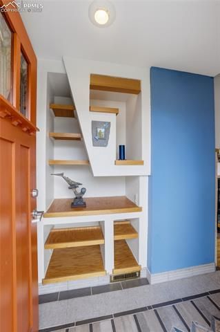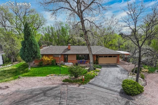 Discover an exquisite blend of mid-century charm and modern updates in this extensively renovated home, perfectly situated on at the far end of a quiet cul-de-sac. This home delivers effortless one-level living with sophistication and comfort. Step inside to freshly refinished oak floors that flow throughout the main level, guiding you to an updated, open kitchen featuring GE Pro & Elite stainless appliances, luxury vinyl tile floors, pull-out pantry drawers, and abundant natural light—ideal for both daily living and entertaining. The primary suite, a recent addition, provides a private retreat with a cozy gas fireplace, dressing/sitting area with extensive closet space, and a luxurious 5-piece bathroom adorned with easy maintenance tile floors and walls and large soaking tub. With modern Comfortex window coverings, a newer 200-amp electrical panel with underground service, and thoughtful updates throughout, this home is move-in ready for those who value privacy, outdoor living, and a quiet yet convenient location. Central vacuum throughout the home, including in the garage for easy cleaning of the included work bench. In addition to the 2-car attached garage, there is covered 3rd car parking to the right of the garage. Nearly all windows are newer Pella and Anderson. Keep your home cool in summer with the original attic fan located in the hallway, or the newer central a/c system. An expansive bonus room in the basement is perfect for your hobbies or could become a home-theater or game room. Outdoors, your private sanctuary awaits. Extensive terraced garden beds, a babbling water feature, with both covered and sunny patio & deck areas. The property backs to a densely treed undeveloped open space with a seasonal creek, making this backyard a gardener’s dream and a peaceful escape. Enjoy mountain views at the front and unparalleled privacy at the rear—an oasis just minutes from shopping centers and major routes including I-25 and Circle Drive.